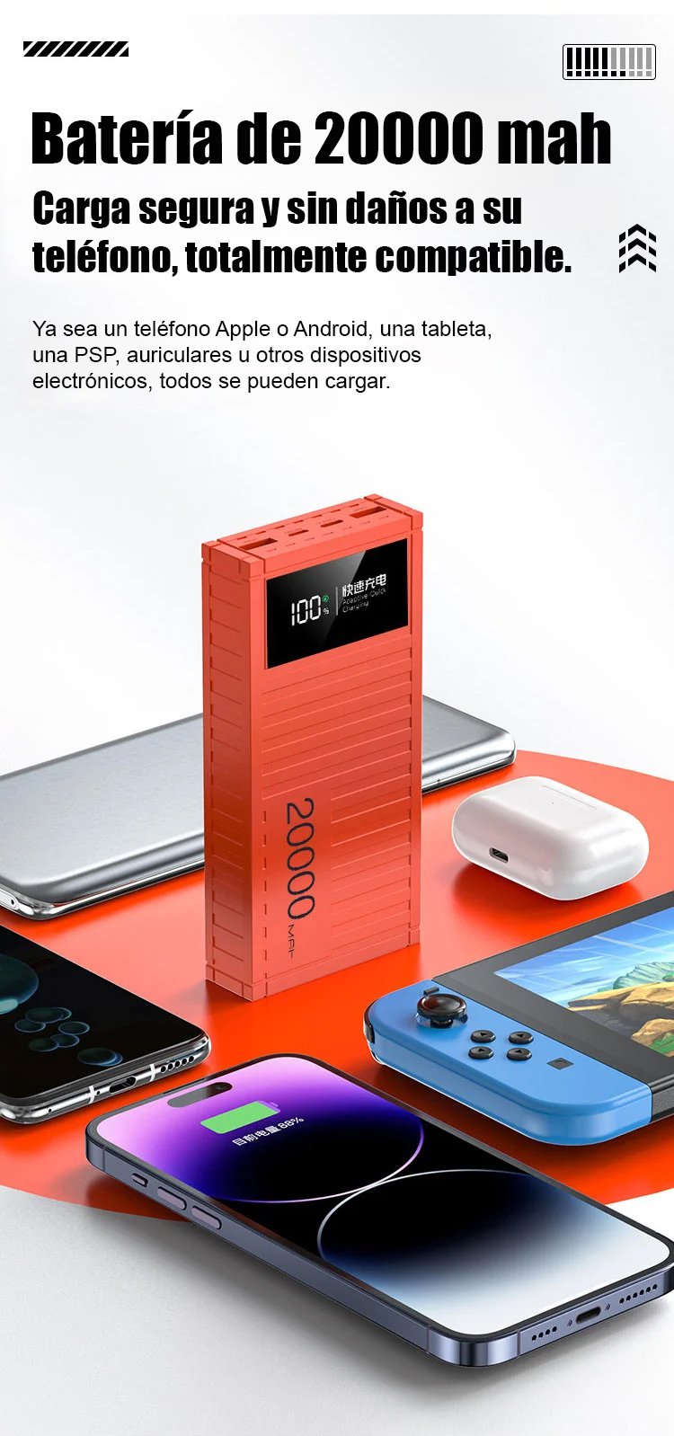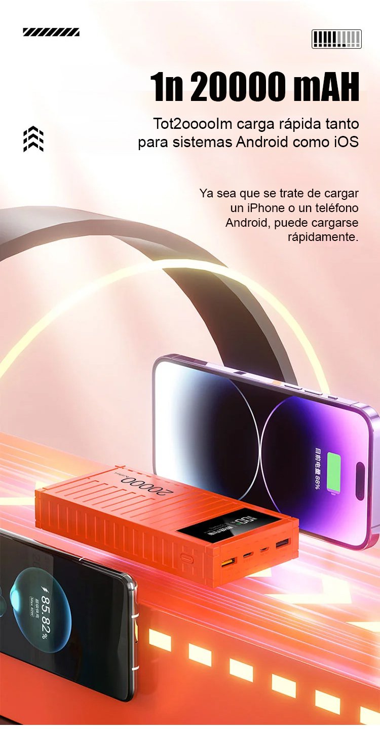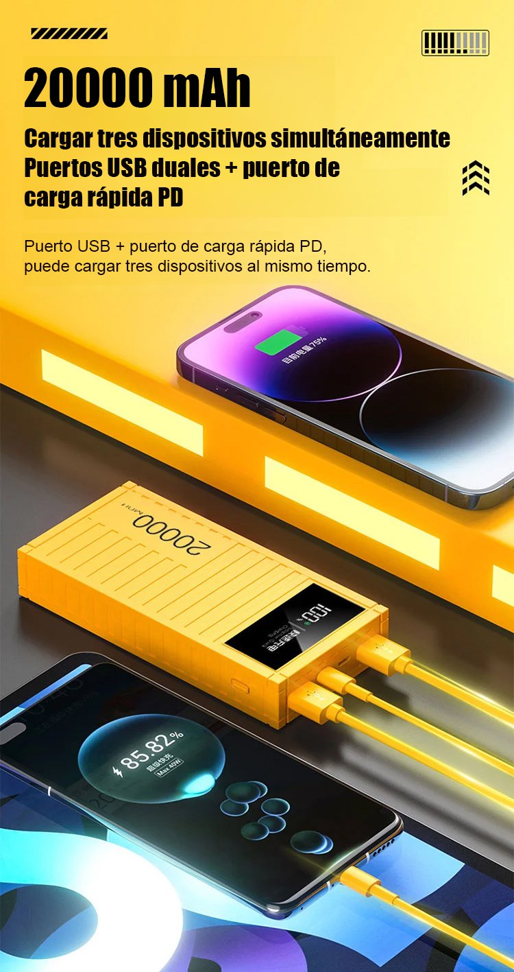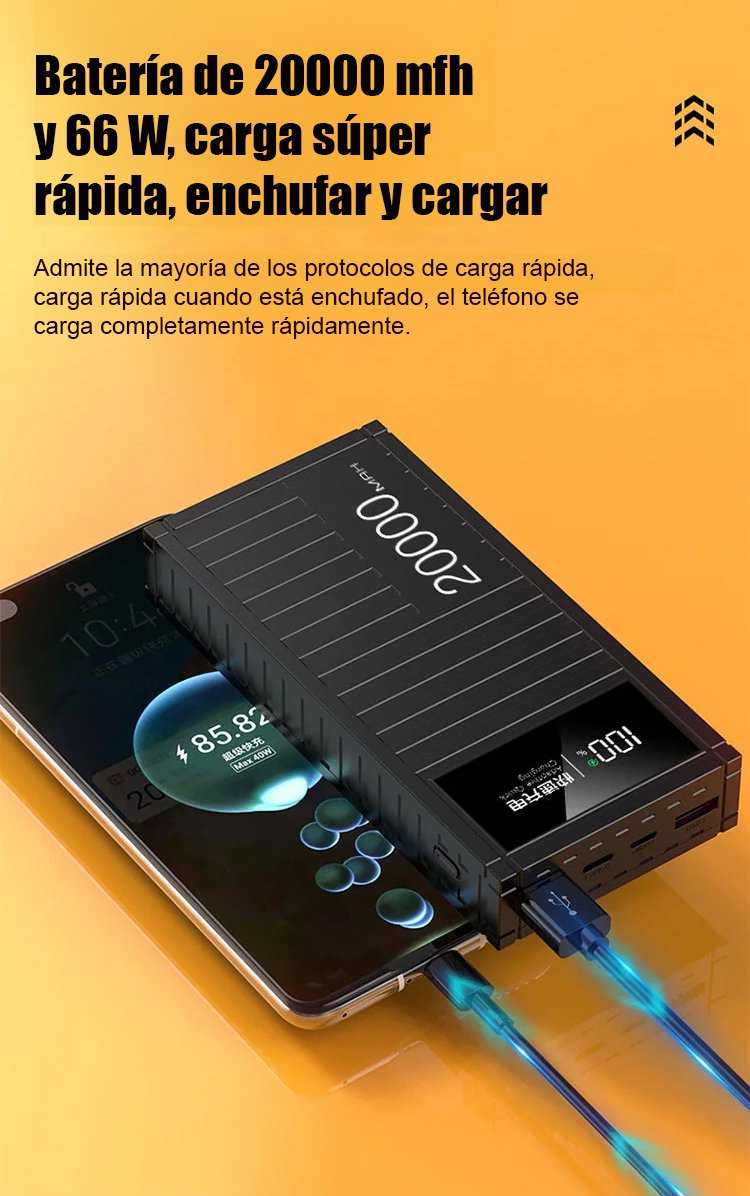 ¡Carga rápida como un rayo, energía completa en cualquier momento y lugar!